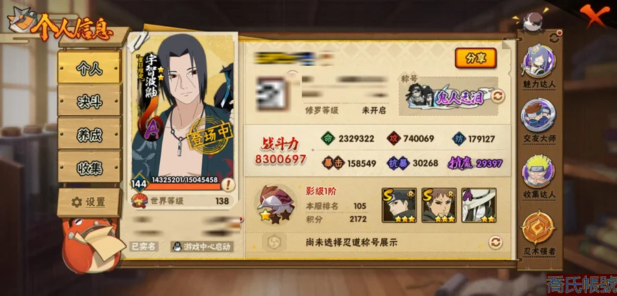 【OBHMWEL705942】戰鬥力:830W+;段位:影級1階;本服排名:500;戰區排名:未上榜;VIP12級;S忍18個;A忍47個;通靈獸18個;S忍:九喇嘛連結漩渦鳴人,永恆萬花筒宇智波佐助,須佐能乎旗木卡卡西,舞之豪傑自來也,傳說中的三忍自來也,大蛇丸,死門邁特凱,波風水門,木葉創立千手柱間,穢土轉生千手柱間,穢土轉生解宇智波斑,須佐能乎宇智波鼬,須佐能乎宇智波止水,忍界大戰宇智波帶土,四代目風影羅砂,忍界大戰艾,天道佩恩,大筒木桃式;A忍:邁特凱(4星),猿飛阿斯瑪(3星),疾風傳我愛羅(4星),幹柿鬼鮫(3星),飛段(3星),九尾查克拉漩渦鳴人,萬花筒寫輪眼宇智波佐助,須佐能乎宇智波佐助,宇智波泉奈,忍界大戰秋道丁次,忍界大戰日向寧次,忍界大戰李洛克,最終章日向雛田,幻之真容旗木卡卡西,忍界大戰旗木卡卡西,元氣夏日旗木卡卡西,穢土轉生猿飛阿斯瑪,宇智波止水,青年波風水門,近松十人衛千代,五代目水影照美冥,穢土轉生桃地再不斬,漂泊武士桃地再不斬,桃地再不斬,奇拉比,忍界大戰奇拉比,青年艾,俠隱江湖綱手,漂泊武士千手扉間,青年長門,漂泊浪客佩恩六道,新春限定小南,漂泊浪客小南,地怨虞角都,新春限定大蛇丸,緋流琥蠍,蠍,宇智波鼬,新春限定宇智波鼬,夏日限定宇智波鼬,迪達拉,穢土轉生迪達拉,死司憑血飛段,俠隱江湖大野木,桃式顯現漩渦博人,六代目水影長十郎,五代目雷影達魯伊;通靈獸:忍犬,藍蛇,蛤蟆吉,砂之守鶴,忍龜,鐮鼬,猿魔,山椒魚,蛞蝓,蜃,蛤蟆仙人,鮫鯊,蛤蟆健,烏鴉,蛤蟆龍,熊貓,蛤蟆廣;時裝:百戰波風水門,百戰宇智波鼬須佐能乎,蜀面豪傑舞之豪傑自來也,百戰大蛇丸,百戰佩恩天道,剎寂鬼人桃地再不斬漂泊武士,冷玉豪情綱手俠隱江湖,緋櫻綻放春野櫻百豪,血霧怪人幹柿鬼鮫,剎那的藝術迪達拉,命定之戰宇智波佐助疾風傳,水之妖姬照美冥五代目水影,熊貓少女天天峨眉宗師,龍的傳人李洛克截拳宗師,智勇記者宇智波佐良娜,驕陽翠羽照美冥夏日泳裝,傳說的光芒波風水門;【2616】紅面具87片還有10個198元忍者