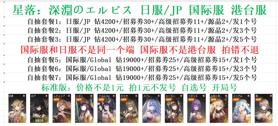全 8591 首家 星落初始號自抽號自選組合開局資源號官服B服白號