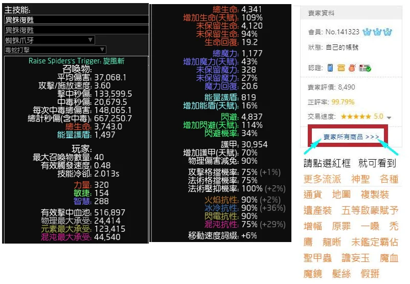 2.我賣的流派(不包含小資)有3大保證 A.滿暴擊滿命中(除了不用暴擊或命中的流派) B.如果有用魔血的話 功能藥劑後綴保證T1詞(暴擊-全抗-攻速施速-閃避護甲-跑速這些等等)+洗好點燃石效果 C.附上POB數據 讓你核對裝備 安心有保障