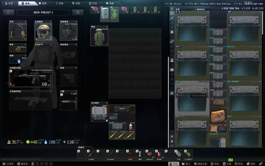 主要是玩PVE,仙女棒差1-2個任務,kappa3*4已拿到,商人全皇冠