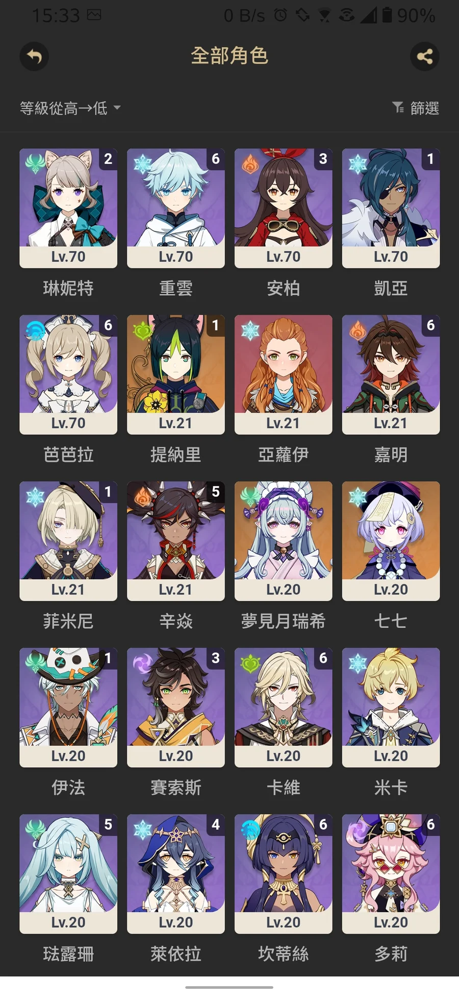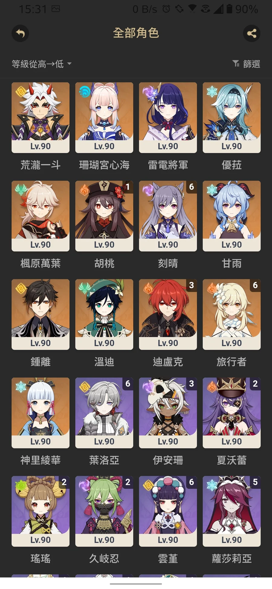 風岩雷草水火神瞳七天神像全LV.10 月神瞳當前版本已收集完畢
