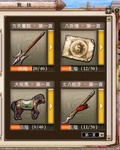 扮裝:陰陽刃武器.月琴.廣寒兔子.邪軍.典藏龍舟.諸葛木牛.雲豆.白狼扮裝