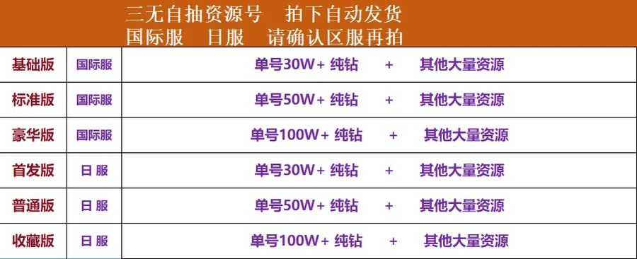 遊戲帳號內容已清楚打出來 沒打出來的皆為隨機附送 不要自己亂加東西 資源 再說帳號上怎沒有 後續出現問題 一律以賣家公布為主 介意勿買 帳號一律不幫留 專屬是方便購買 不是幫留 如果下單後 沒帳號 一律換組或不互評退款 購買表示同意 介意勿買 若需綁定個人訊息或遊玩 如手機 身分證 或是 下載遊戲 VPN 等 請自行綁定或GOOGLE 不能綁定者或無法遊玩者 無法退款 介意勿買 購買後 諾帳號 信箱 手機 VPN 等帳號安全性相關 需要額外花費 才能改密或者遊玩 綁定私人個資等問題 賣家無權處理綁定 或者代付 故若交易後有需額外支出 不能綁定不能修改密碼者或無法遊玩者 請買家自行處
