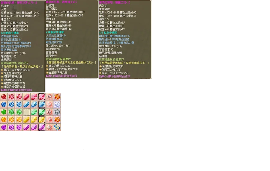 角色共用物品 : 100黃弓+15 聖黃戒+14 命倫戒+13
