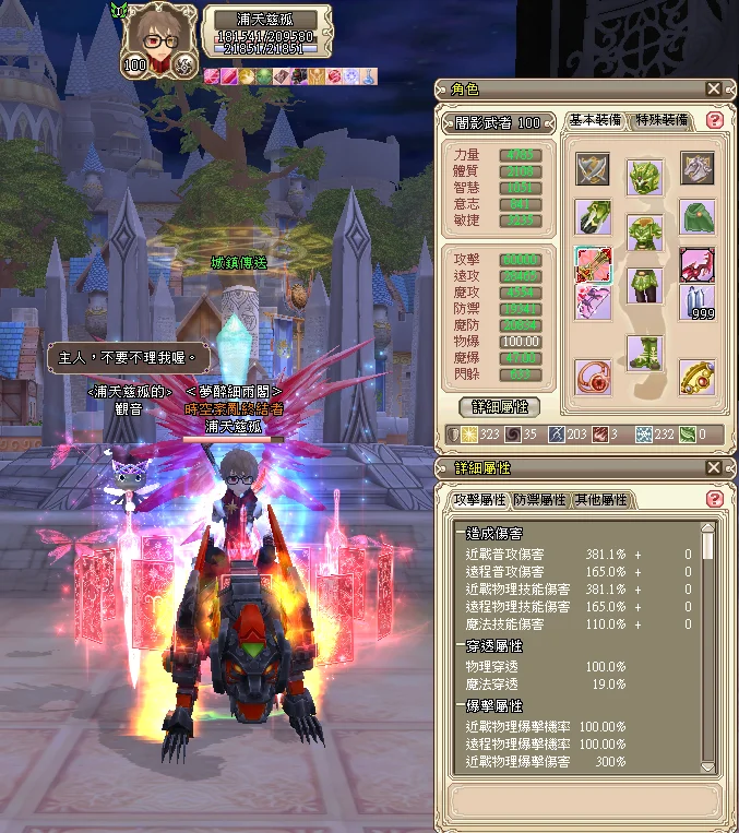100永恆神使 99橘狼錘+18 100黃套+9 其餘物品與其它角色共用