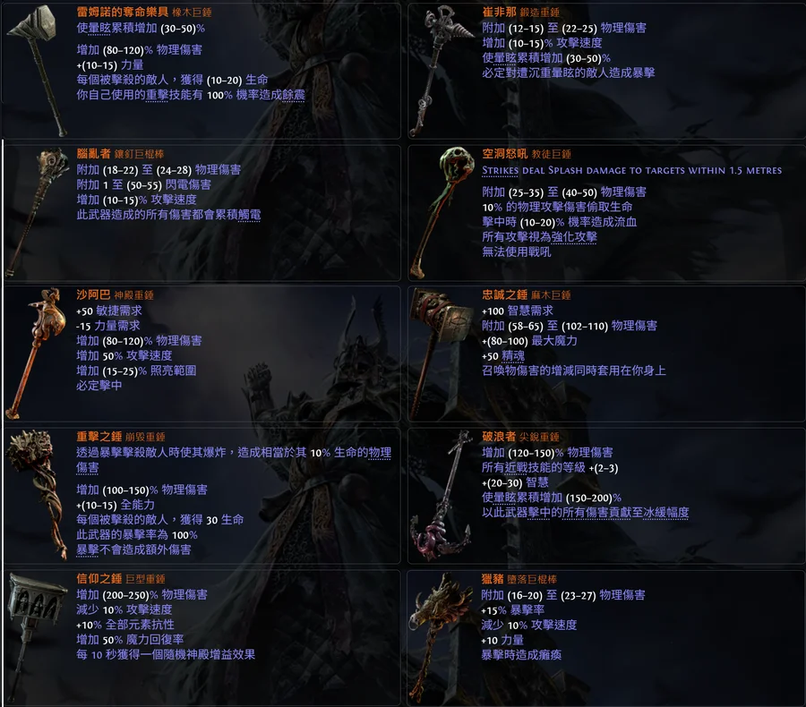 【雙手錘、狩獵傳奇武器】獵豬雷姆諾的奪命樂具崔非那腦亂者空洞怒吼沙阿巴忠誠之錘重擊之錘 破浪者信仰之錘