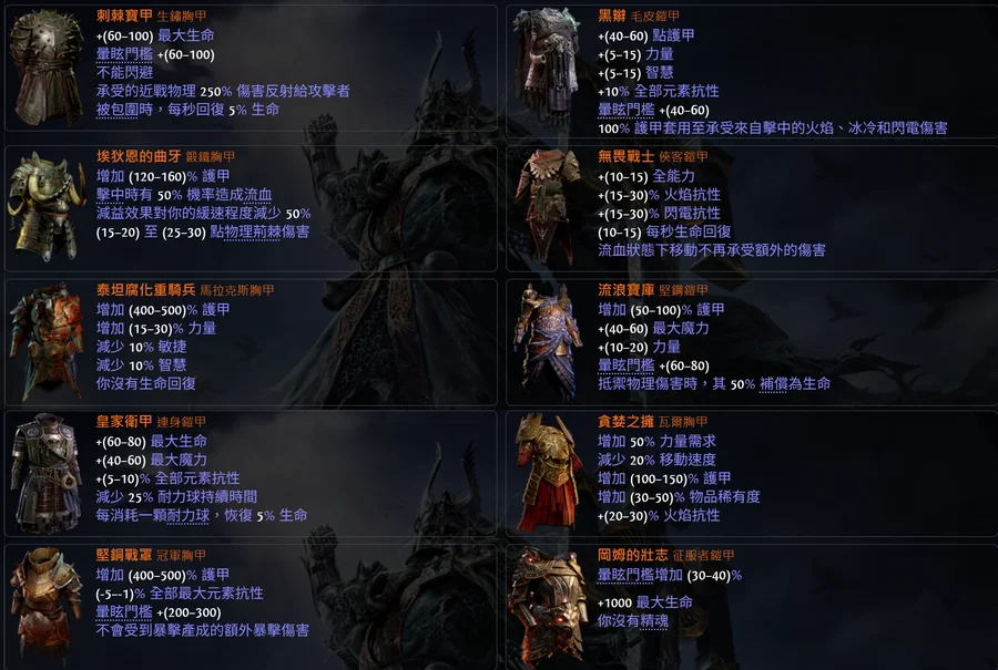 【胸甲、狩獵傳奇裝備】刺棘寶甲黑辮埃狄恩的曲牙無畏戰士泰坦腐化重騎兵流浪寶庫皇家衛甲貪婪之擁堅銅戰罩