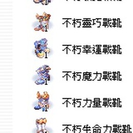 不朽力量戰靴、不朽靈巧戰靴、不朽生命力戰靴、不朽魔力戰靴、不朽敏捷戰靴、不朽幸運戰靴