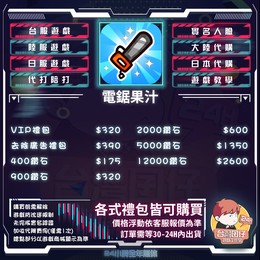 【12000鑽石=2600元】🏆電鋸果汁台服代儲🏆24H客服🔥台灣囝仔🔥退刷包賠