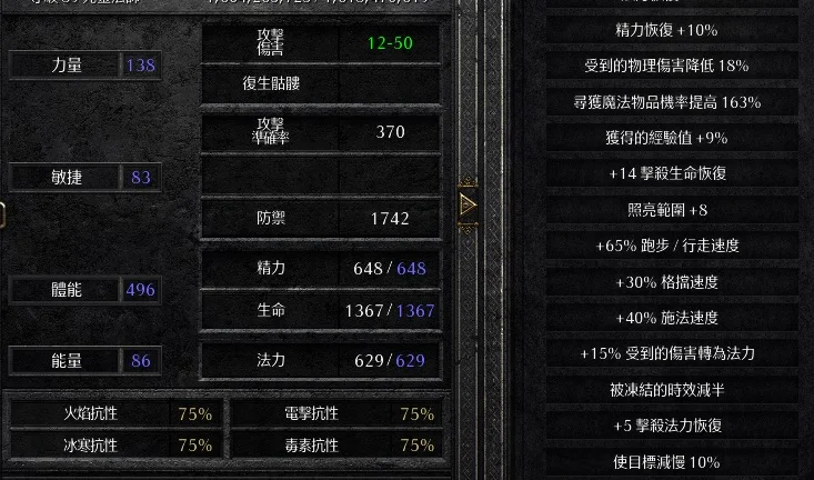 武器:野獸斧+魔胎(鑲抗寶) -45+5+10