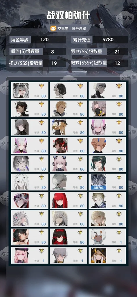 18特3S終焉囚影全幻神全專 全幻神,SSS終焉囚影謬影明晰夢,SS3誓炎塵銘迴音森息,SS希聲檀心芒星灼惘啟明萬華深謠輝曉幻日,除了迴音都有專武 18個特皮,多在崗限定塗裝,主C希聲誓炎終焉囚影人魚都有特皮,3個武器共鳴材料,12個意識共鳴材料,3W憑據 官服IOS通用,關聯已登出,單綁手機。