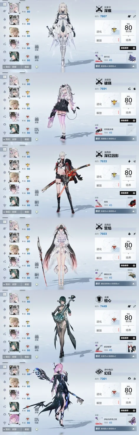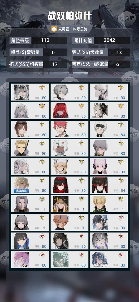 118級 新出的角色都全畢業 多皮膚 多黑卡皮 比安卡花嫁皮 露西亞花嫁皮 阿爾法黑道皮 等等 輔助機齊全 幾乎都有配對 還有1700角色卡 3000多黑卡
