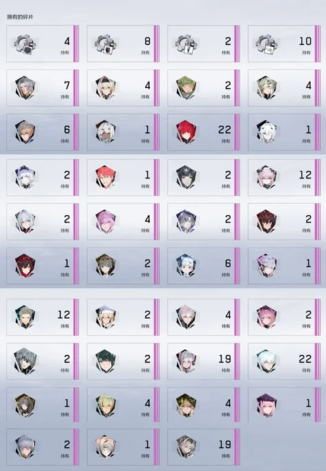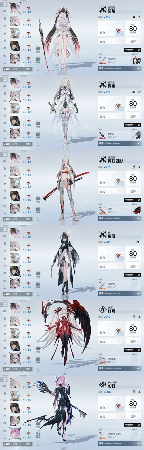 ss誓焰花嫁幻日終焉啟明s希聲 物理:ss深痕,s希聲,s迴音。 雷隊:s囚影,s芒星,s森息。 冰隊:ss啟明。 火隊:ss誓焰。 暗隊:s謬影。 空隊:ss終焉,ss幻日。 深痕誓焰花嫁。 主線第15章,肉鴿基本沒打。據點,黃金之渦還有一些資源。 新角色保底池已墊21發。基準池已墊53發。 單綁手機可換綁。官服ios互通。