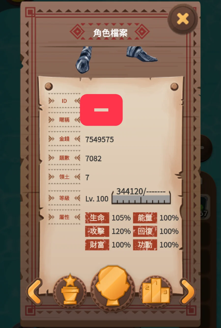 「國小土地」100等,金錢900多萬,土地券19XX,大量能量回復藥水