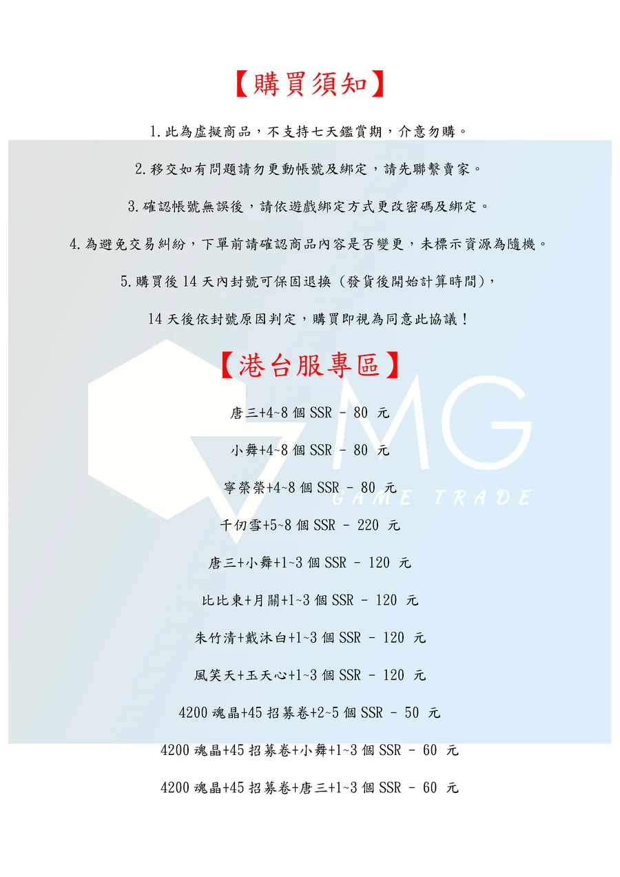 商品類型:帳號