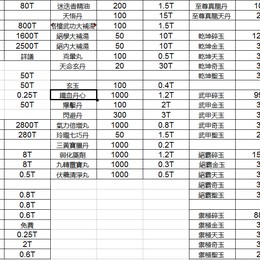 弱化藥劑1.5t 伏羲0.6t 正露丸3t