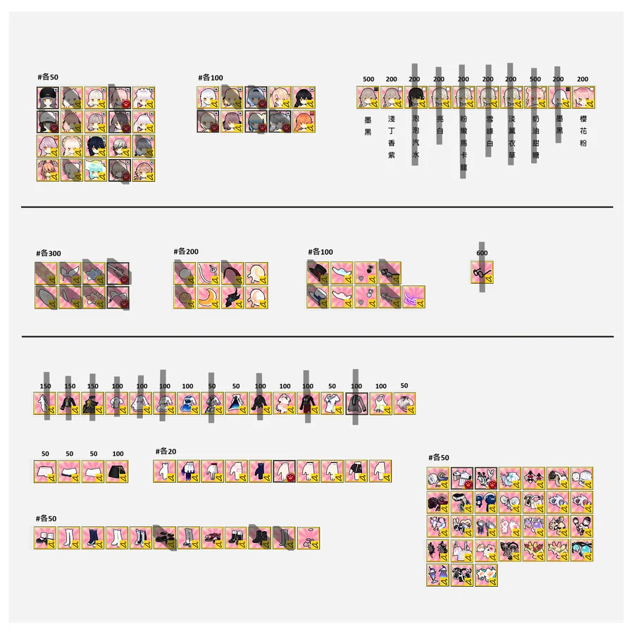 價格如圖,皆實收,劃掉=售出。