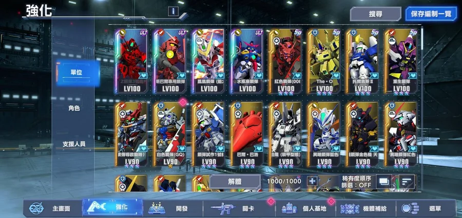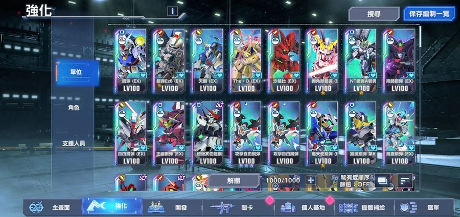 UR:攻擊自由突滿武裝滿、沙薩比、獨角獸、NT、正義、能天使、風靈、自由