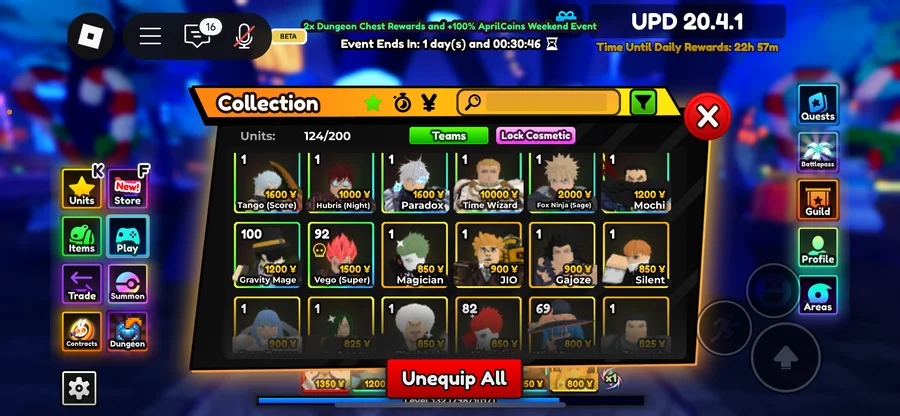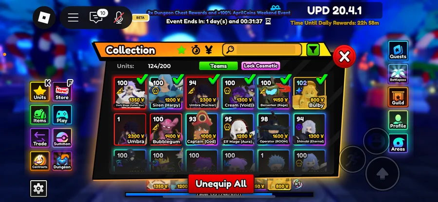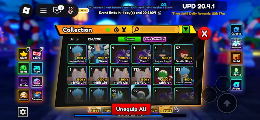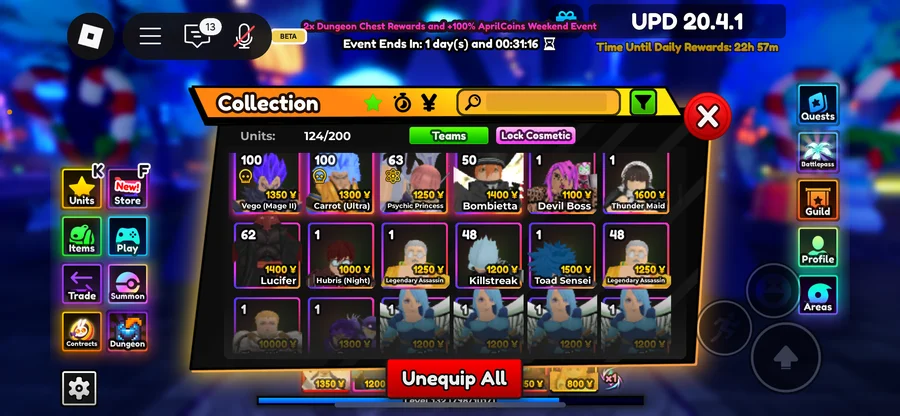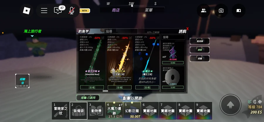 Roblox帳號,帳主之前玩過多款遊戲,大部分都有課,總價值超過台幣1萬元,其中以Fisch、Blox Fruit、AA、All Star Tower Defense主流遊戲皆達到一定練度,但圖片上的遊戲是少部分,有一些遊戲有玩,但沒有放上來,如果想問其他遊戲的情況,麻煩請私訊賣家。