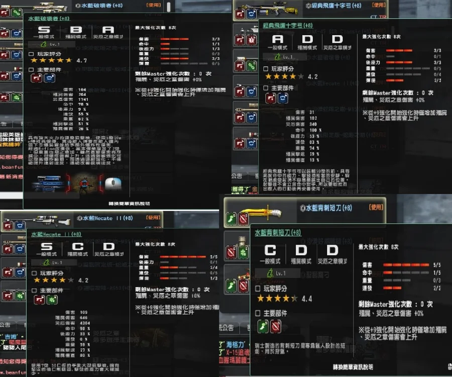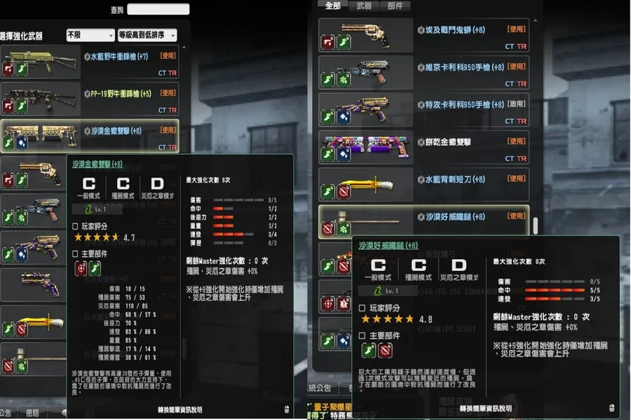 強化好的素質槍枝大約有30~40把上下 算是頂上 最後一頁有強化範例