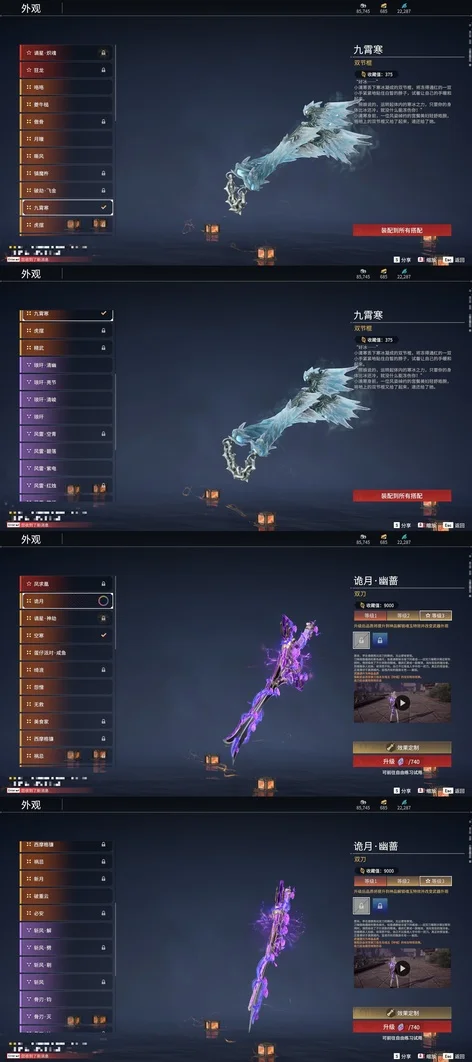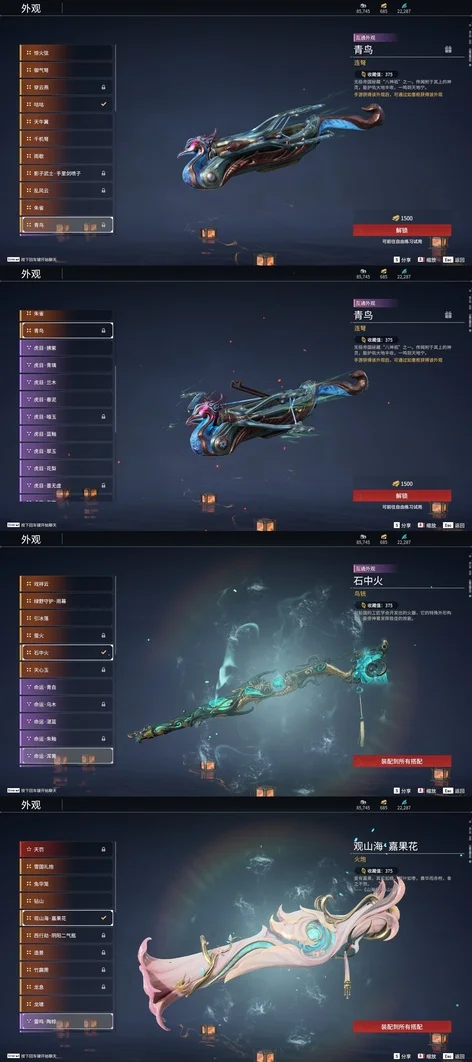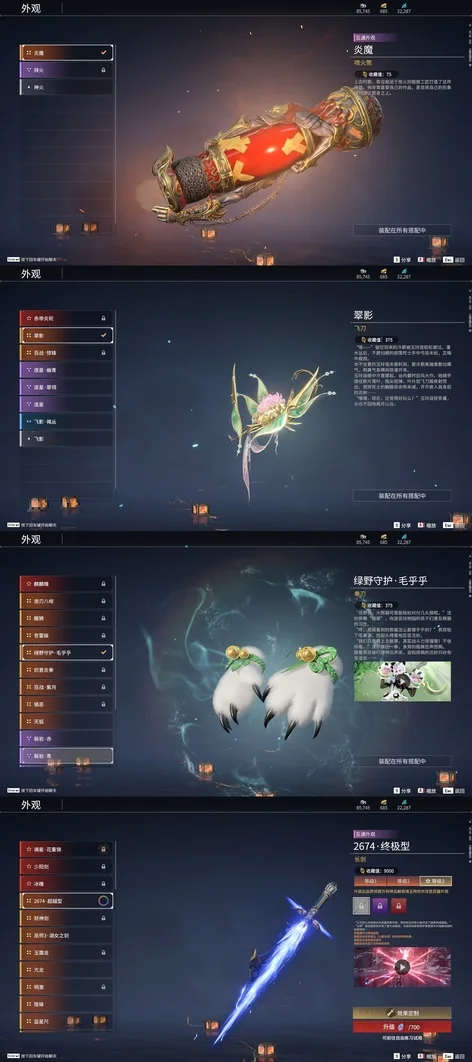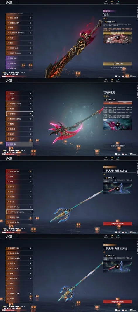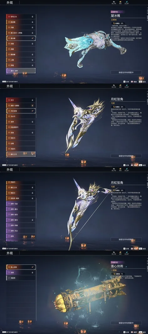 陰陽師·傘劍,西行劫·紫金寶劍,隱鋒,監星尺,風馳弓,仙毫,轉輪弓,數珠丸,金玉一文字,狼主,聽濤,雷王鋸,龍蟠,長虹,建木,華夏神兵·馬首刀,仙舞,雪殘梅,三更令,橈尺刀,九霄寒,嘶風,月瞳,夔牛槌,破重雲,無救,2674·貳型電漿杖,倒馬棍,學宮之杖,武道無窮·封魔,觀山海·水衡,護世四法·螭龍,燭淚,朱雀,石中火,龍嘯,炎魔,蓮心劍雨,觀山海·嘉果花,虎踞,千機弩,雨歇,引冰落,觀山海·金神鉞,破天,天牛翼,豹胎易筋弓,櫻落,逍遙,鬥羅大陸·海神三叉戟,咕咕,咯咯,怨憎,驚百里,天狐,凝冰魄,亢龍,青石猊,麒麟牙,耀夜流華,鑽山,瞑視,2674·超越型,蛋仔派對·鹹魚,綠野守護·雨幕,烏木弓,綠野守護·毛乎乎,白鹿,靈木角,空寒,斬怨,錦鯉玉扇,巫師3·湖女之劍,御氣弩,戲祥雲,雪國禮炮,兔華籠,糖果棍,判官筆,拳皇·舞扇,騰雲歌,光影裁決,詭月,驚火弦,鎮山河,翠影,月虹弦角