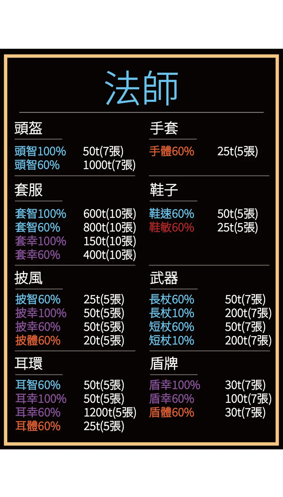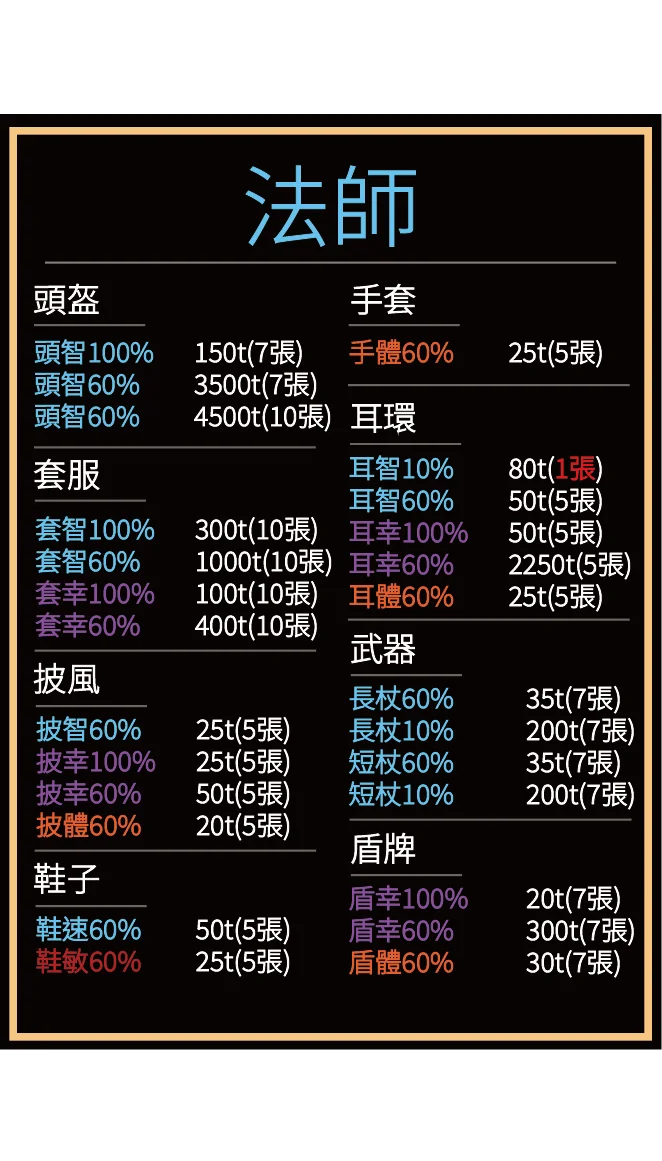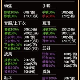 *廢捲100張=100t(會給你你職業能用的10%、60%防具卷軸,不會給你披風的)