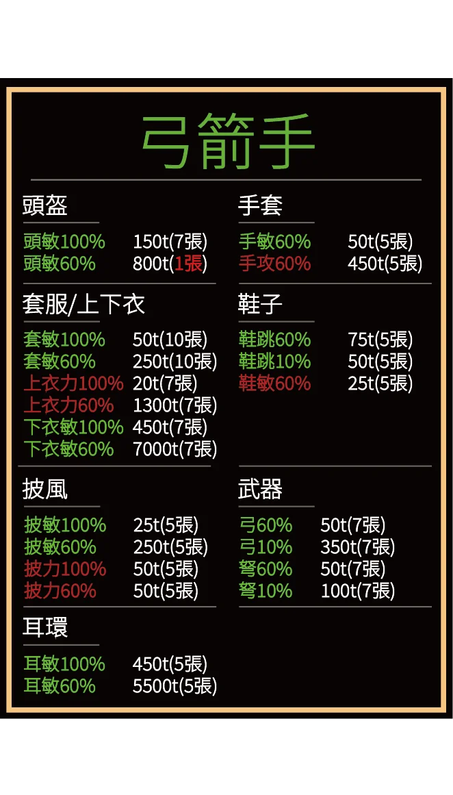 單手劍攻擊60%=15t(7張=100t)