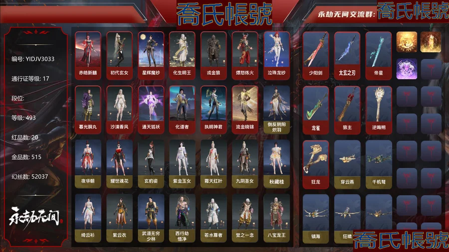 稀有限定:飞衡,至尊宝,零号·赤焰,大圣娶亲,时雨天司,太华