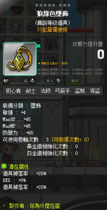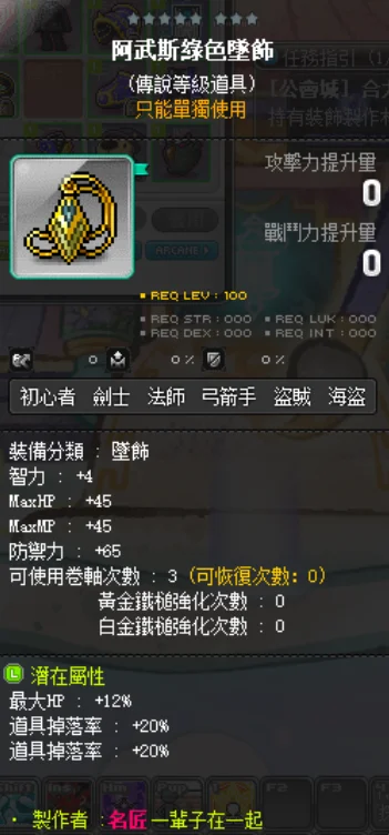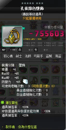 < 單獨使用意思是同名稱裝備無法裝備2件 >