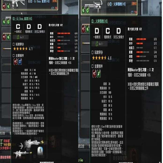 強化好的素質槍枝大約有30~40把上下 算是頂上 最後一頁有強化範例