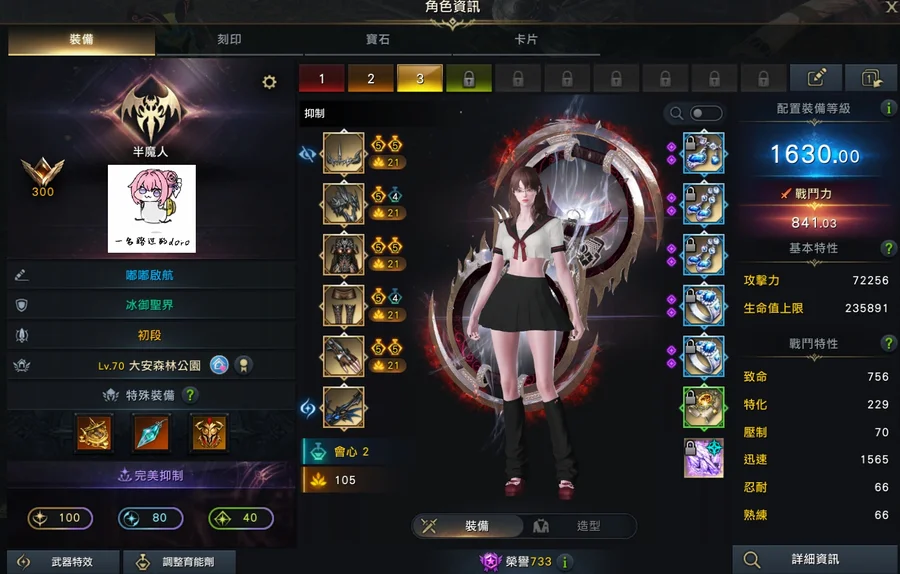 半魔人 裝分1630 兩顆10寶變身 一套全10抑制