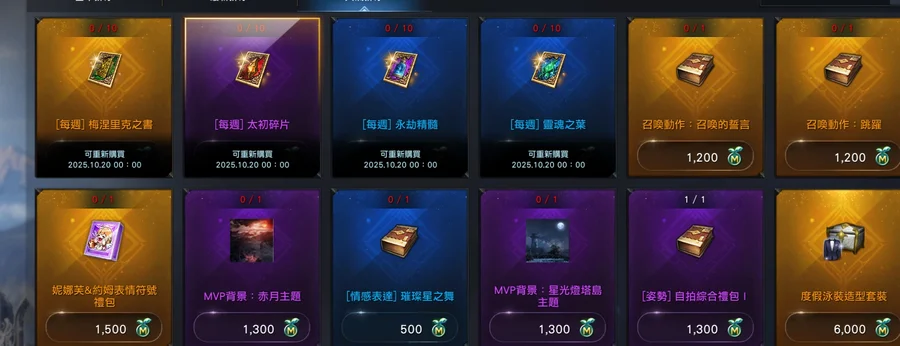 武器:99品 手套:96品 頭飾:99品 肩胛:100品 上裝:100品 下裝:100品