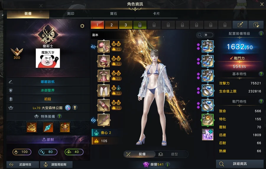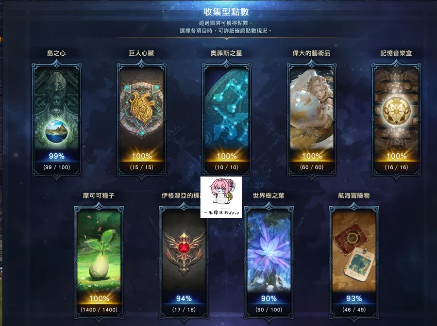 武器:100品 手套:96品 頭飾:94品 肩胛:97品 上裝:97品 下裝:99品