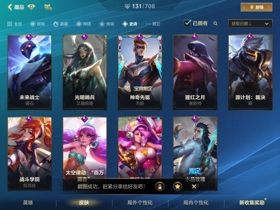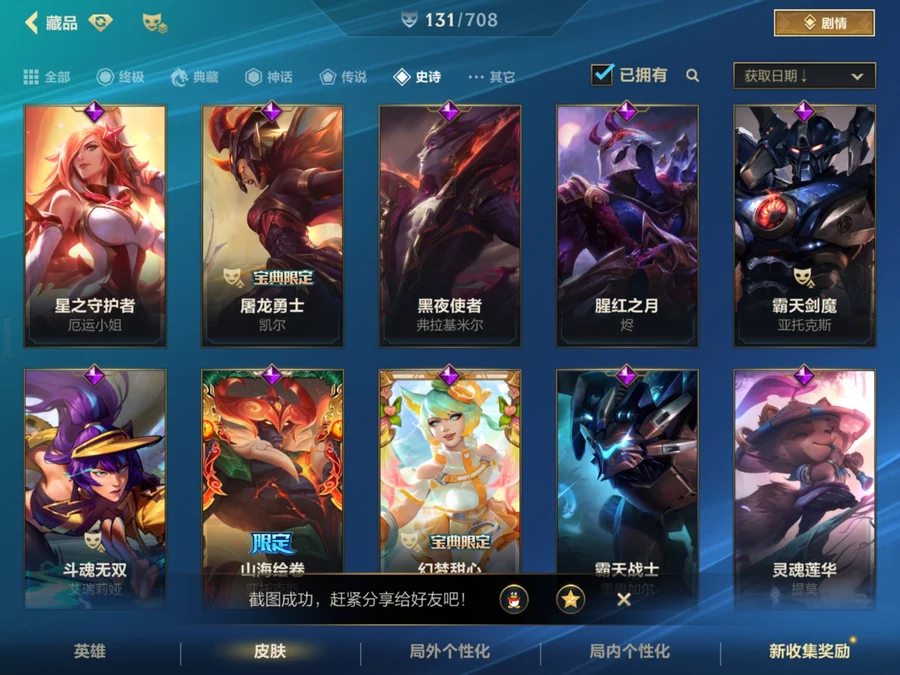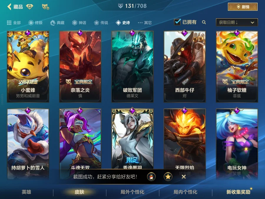 【137等】【蘋果QQ】英雄89/皮膚131 神話2/傳說19/史詩59/黃金3
