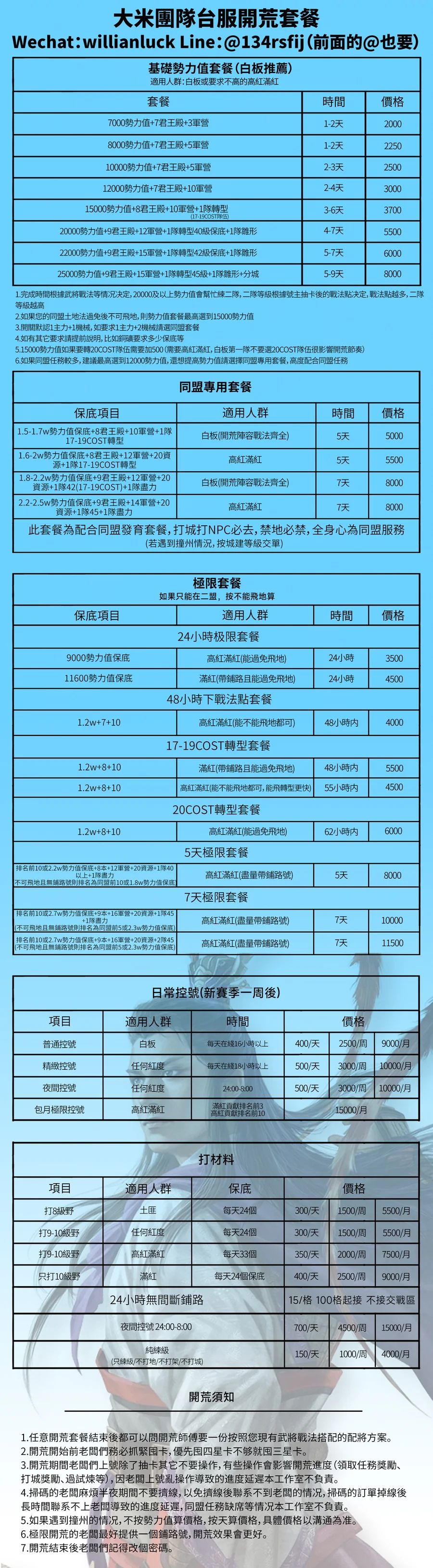 承接IOS/安卓全賽季開荒/配將/控號/鋪路等業務。