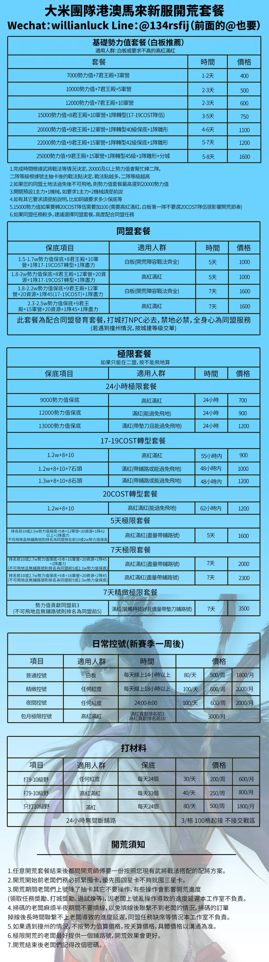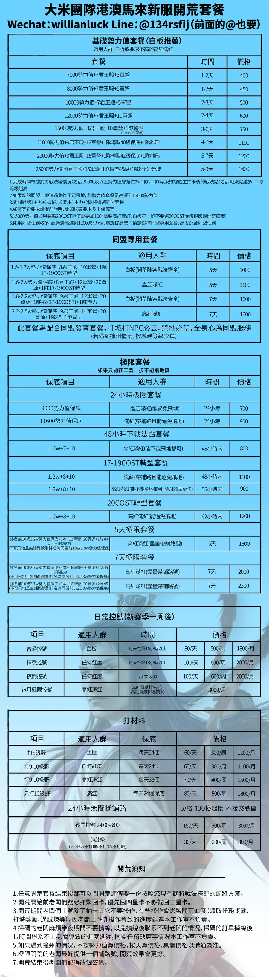承接IOS/安卓全賽季開荒/配將/控號/鋪路等業務。