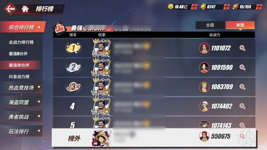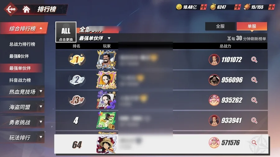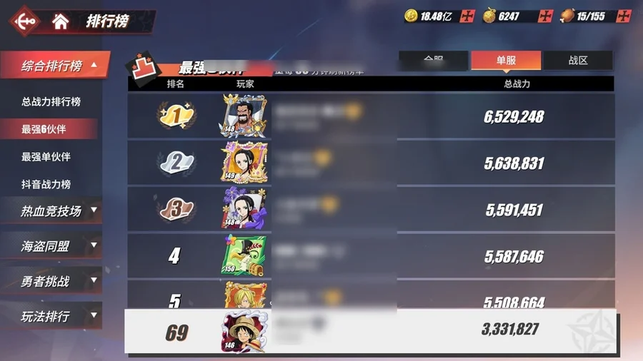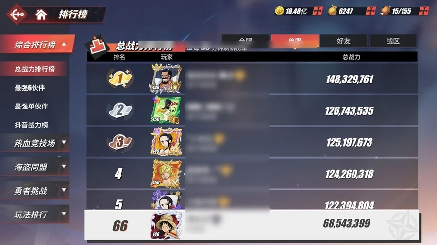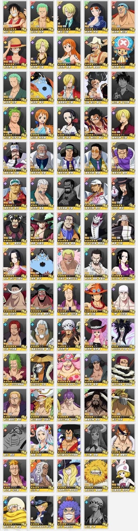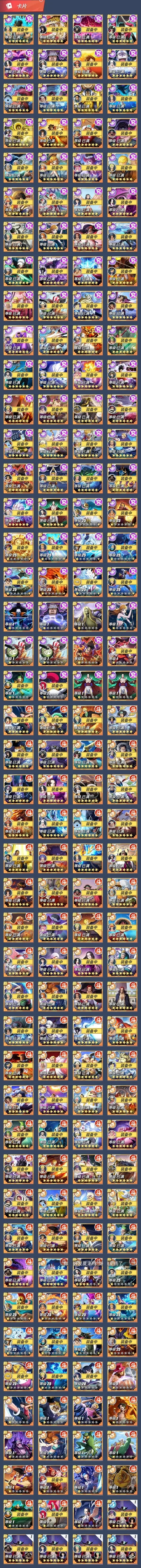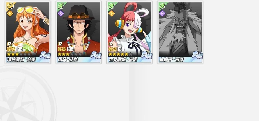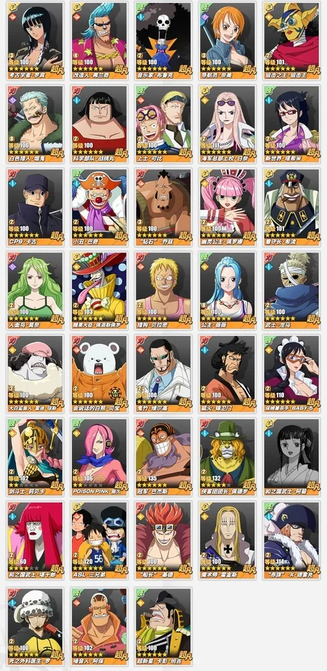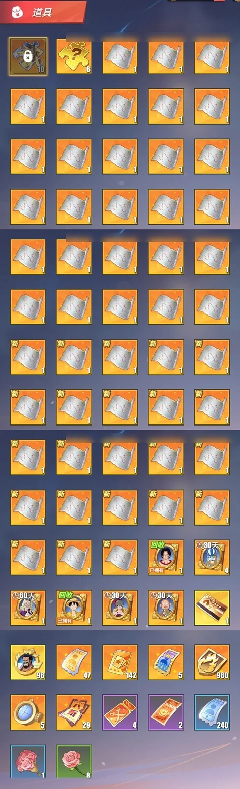 看圖就行,有幾個人沒有,競技場號,沒和之國路飛,沒和之國羅,沒金獅子,沒潤提,沒奎因,還有一個小菊沒有。資源沒剩多少,40多張卷,六七千金果