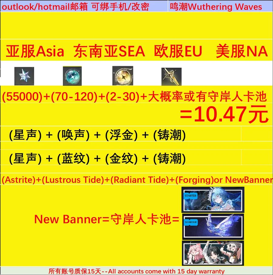 东南亚-(微软邮/男女可选)总570抽=6.2W星声+80 涡纹+12波纹