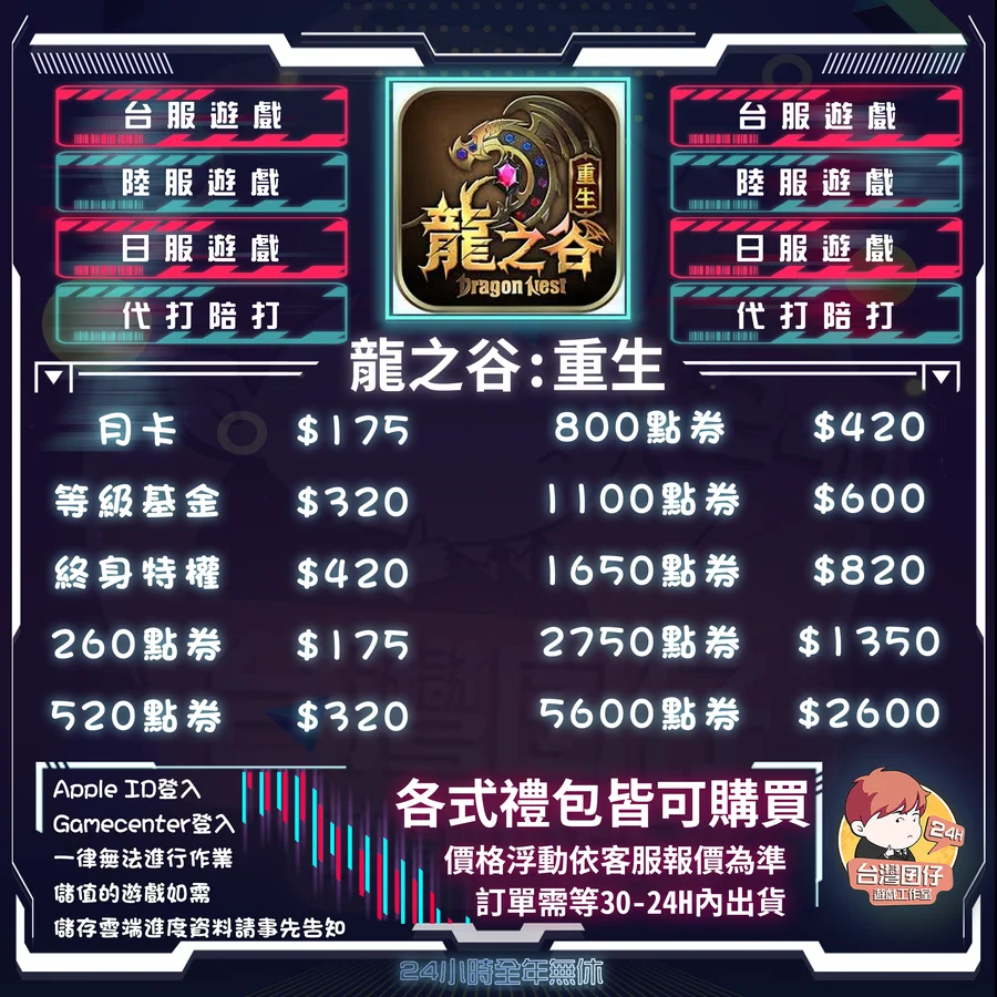 🏆龍之谷:重生 台服代儲賣場
