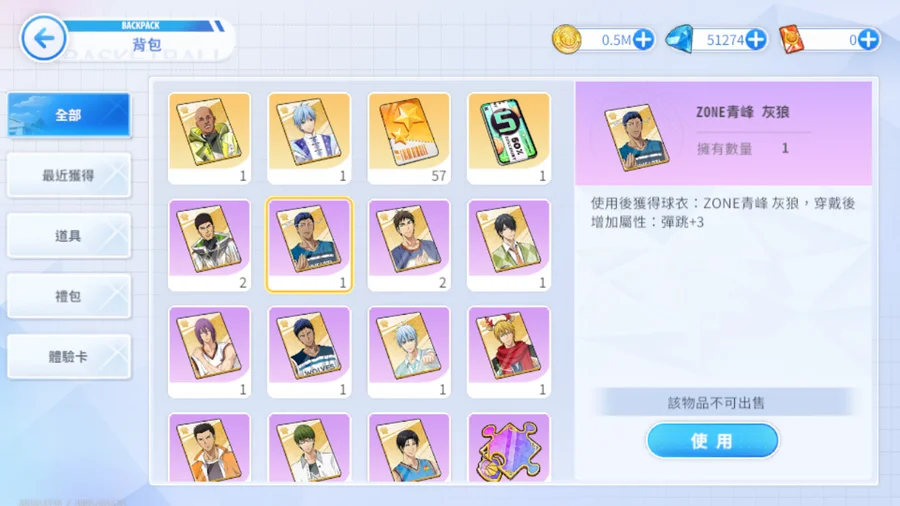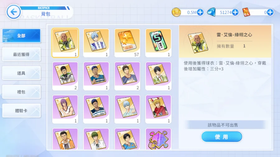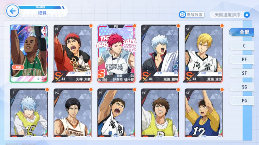 (四)艾倫-綠翎之心/SP黑子-星霜誓約/ZONE青峰-灰狼球衣/火神大我-NBA公牛/紫原-NBA太陽/青峰-NBA灰狼/高尾和成-NBA雷霆/火神大我-熱血男孩/大坪-秀德之壁/黑子哲也-夏日襯杉/黑子哲也-回歸初心/黑子哲也-獨行俠/綠間-悠閒時光/木吉鐵平-球場動能/黃瀨涼太-冬季舞台/岡村建一-橙色風暴/冰室-青色學院