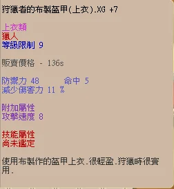 XG+7新手獵人裝備一套(含武)