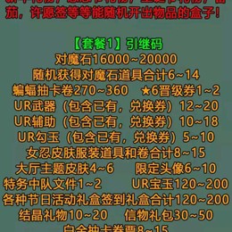 40元 钻石16000+随机4-7个UR武器+随机4-13个UR辅助器+特殊抽卡券10-20+白金抽卡券8-15+高级抽卡券180-210+蝙蝠抽抽卡券200-220