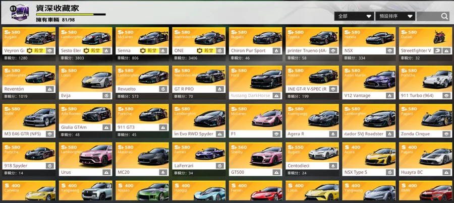通行證車 : Diablo SV. GT R PRO. 911 GT3. 帕加尼Huayra BC