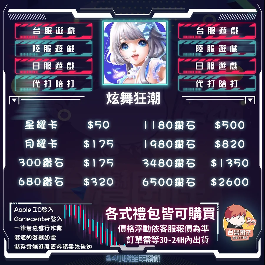 6️台灣囝仔台陸手遊代儲純粹為協助代儲服務,僅收取服務費,無賺取額外差價。