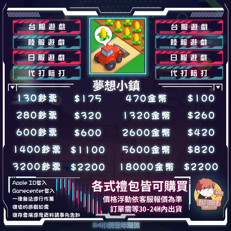 6.台灣囝仔台陸手遊代儲,純粹提供代儲服務並收取服務費,無賺取中間差價