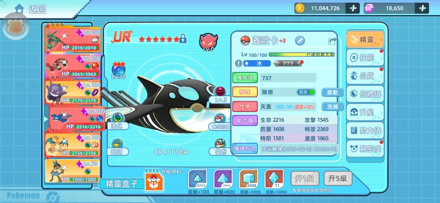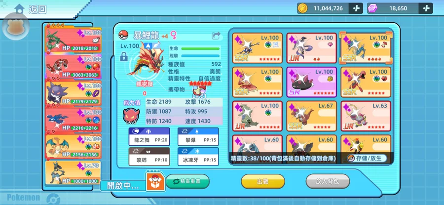 個體質滿:耿鬼 忍蛙 固拉多 蓋歐卡 噴火龍