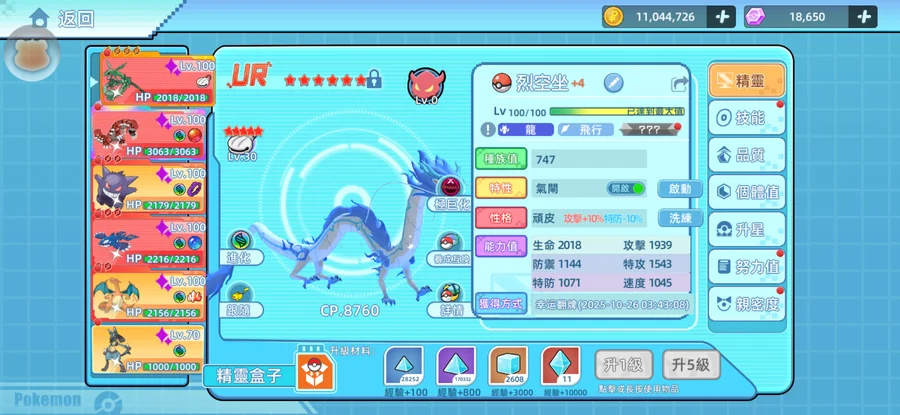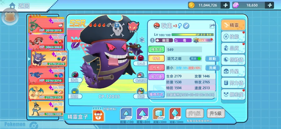 覺醒程度:噴火龍4 伽勒爾急凍鳥2 耿鬼3 暴鯉龍4 固拉多3