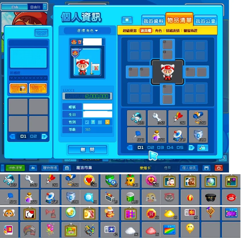 金幣皆可教學擴頂 無須花錢儲值 道具數量持續上升