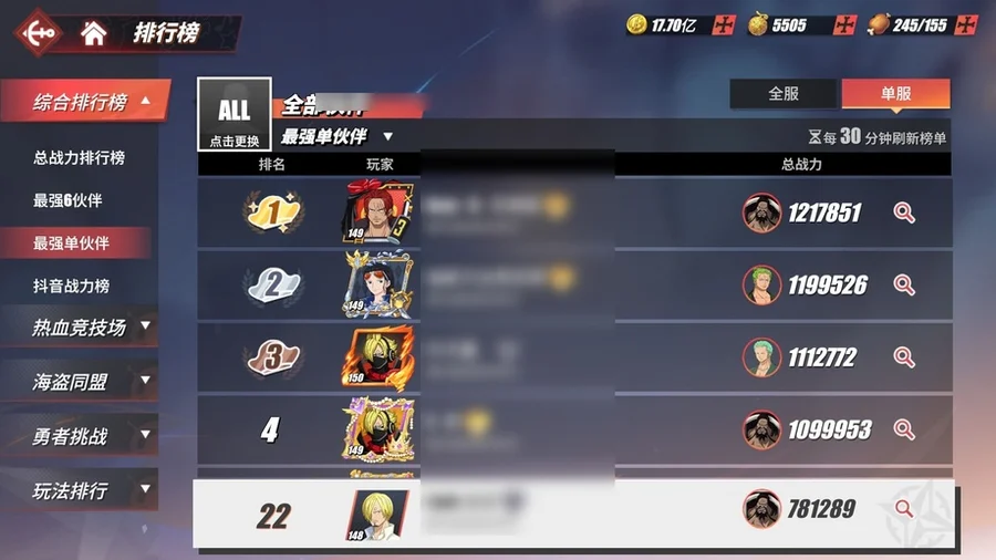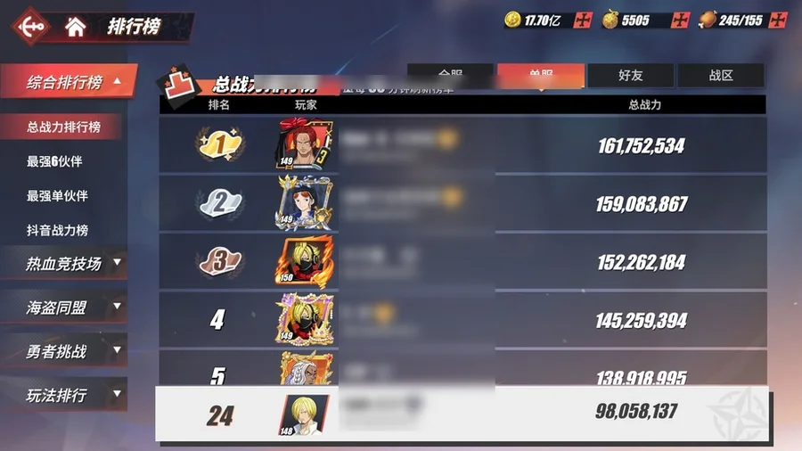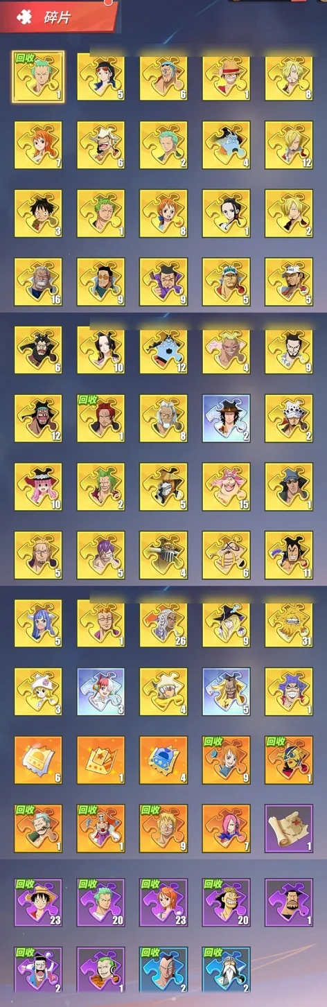 9800萬高戰力,六神船,三98友情技,全圖鑑只差卡普和兩個卓越,卡普186片在一盟能很快出了,後兩個能用金果補,山治和布林婚禮套,5千多金果+45高招+月卡,資源多多每日增加,6星凱多,6星薩博,6星紅發,5星和索隆,5星金獅子,5星青年白胡子,5星新世界鷹眼,5星卡二,5星大媽等等,多人物形象和稀有載具,4電話蟲,多珍寶高洗練,1500積分,安全換綁
