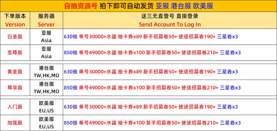 例如 陸服需要綁定到大陸的手機/信箱等個人資料,需要自行綁定,賣家無法提供,如果沒有大陸資料可以綁定 請謹慎購買